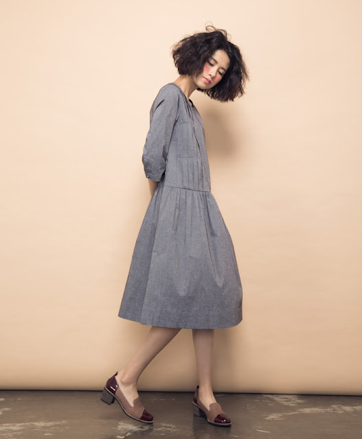 爵士之夜美背排釦七分袖洋裝-雨夜 Price :3280