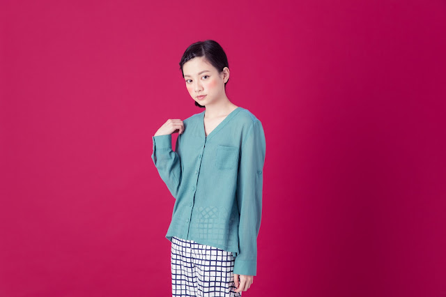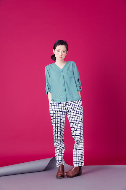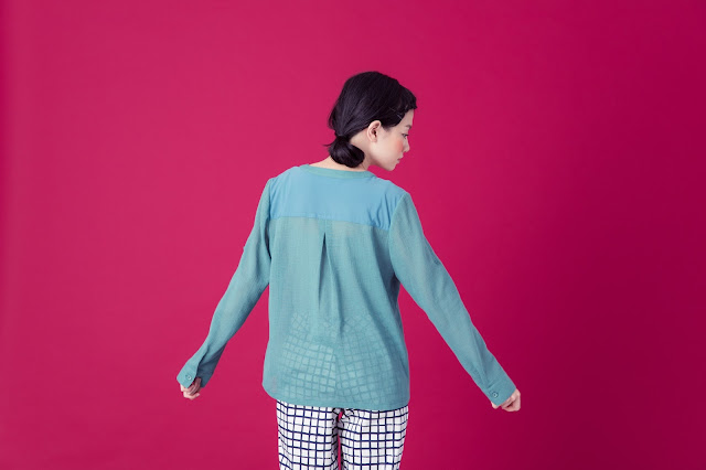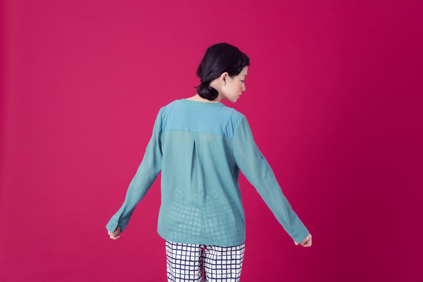 優雅小姐棉麻混紡肩拼接襯衫-山葵綠 Price:2880