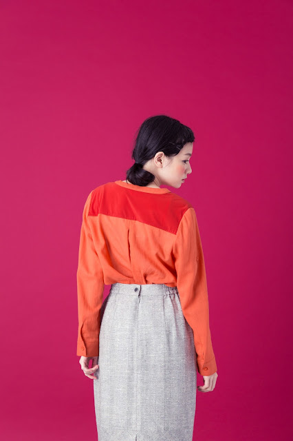 優雅小姐棉麻混紡肩拼接襯衫-威士忌柑橘 Price:2880