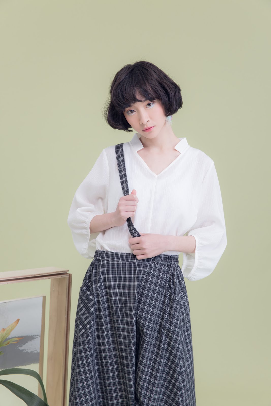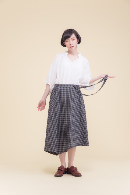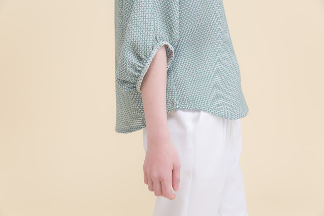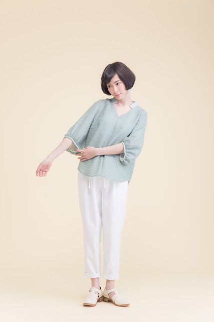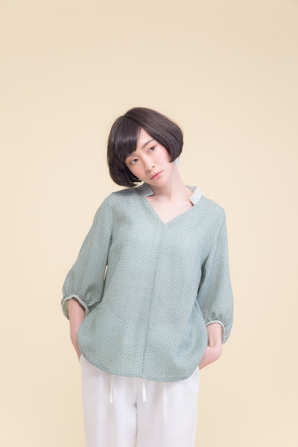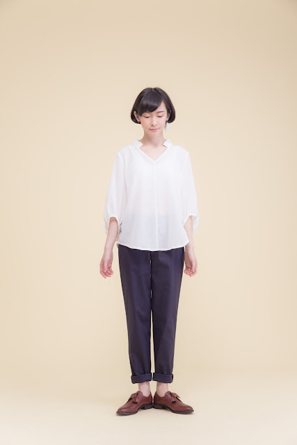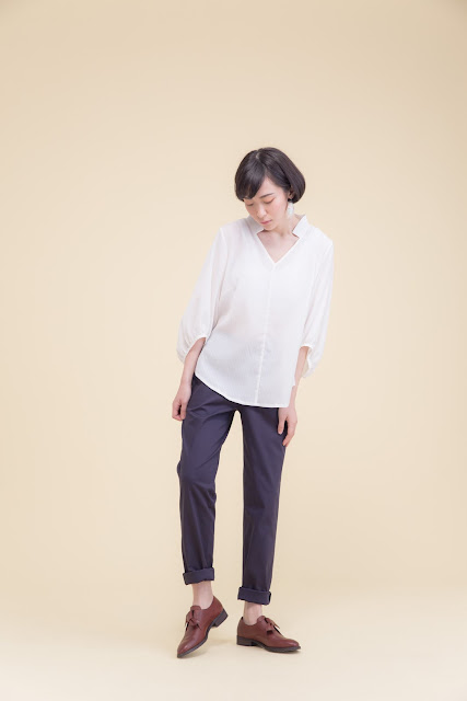 小立領、皺褶寬袖