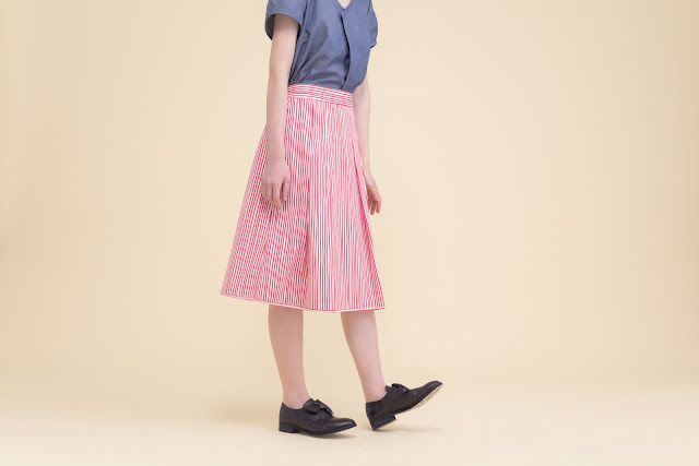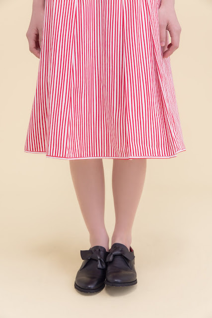 搭配上亮麗的條紋裙
