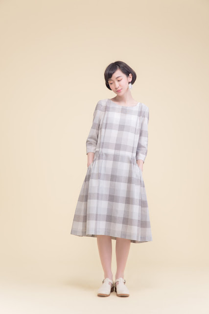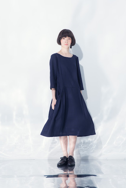 慵懶的貓藍細格大口袋洋裝 Price:3680