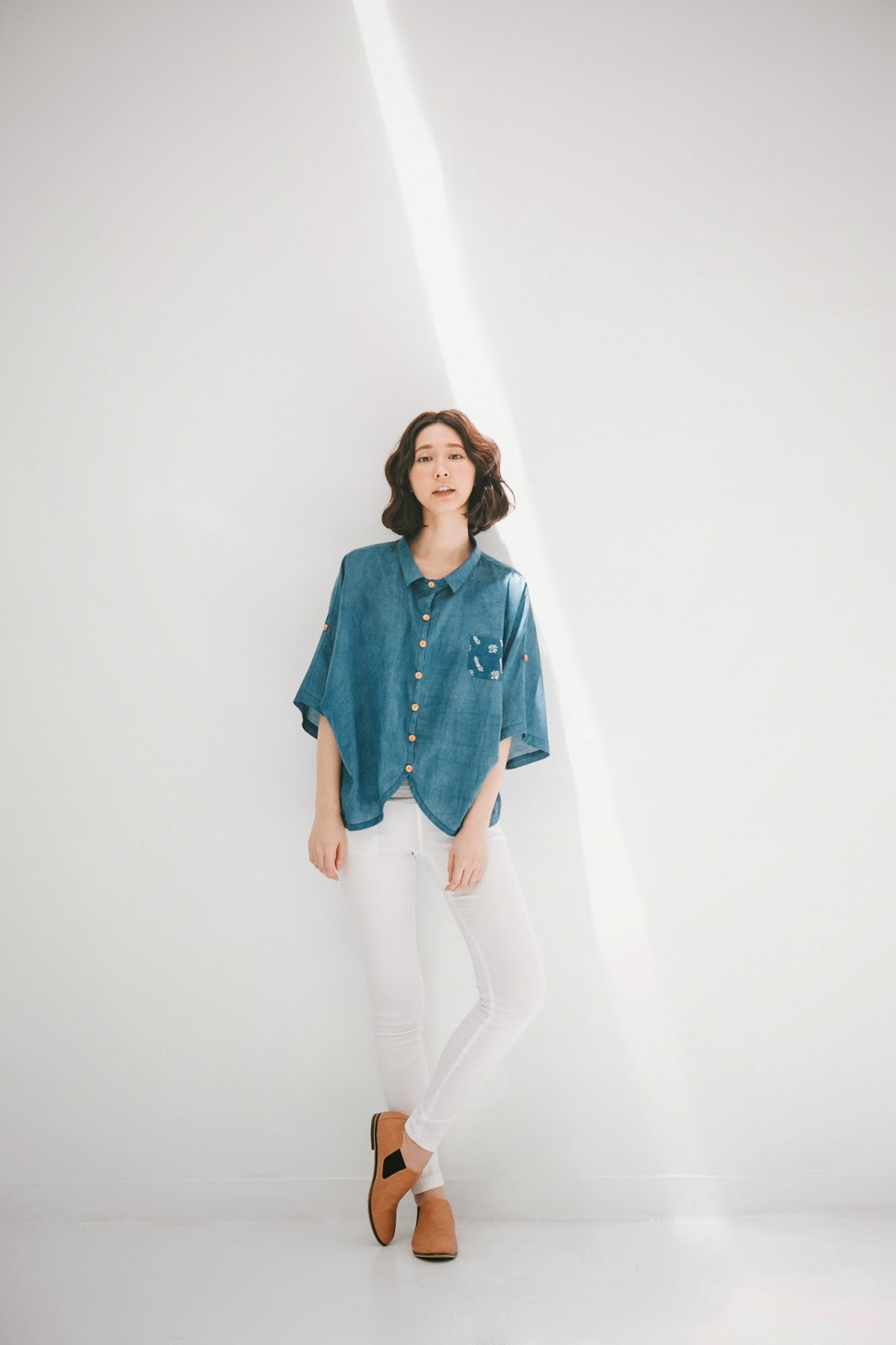 大獲好評的蝙蝠袖襯衫,再度以藍染方式呈現