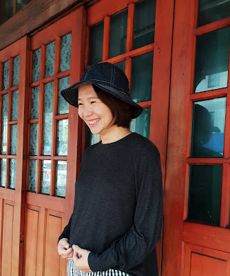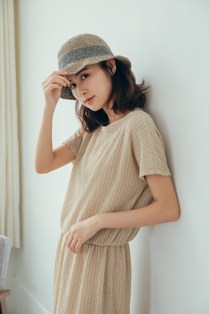 搭配織織的同色系手編帽