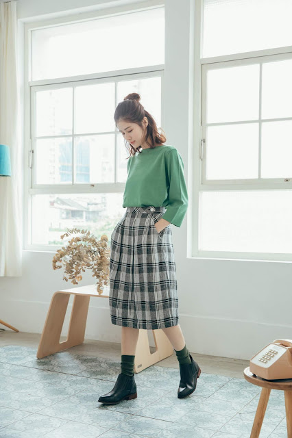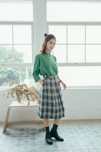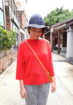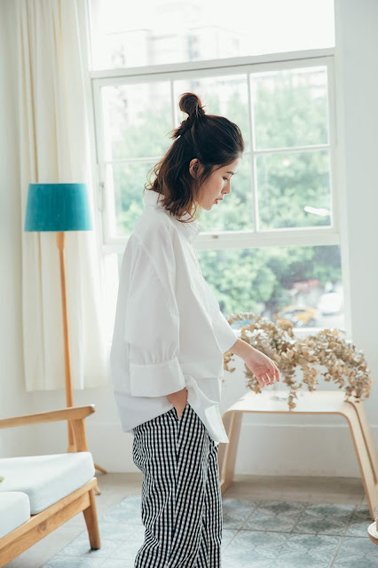 下半身的西洋棋牌格紋褲也是這次新品的愛褲