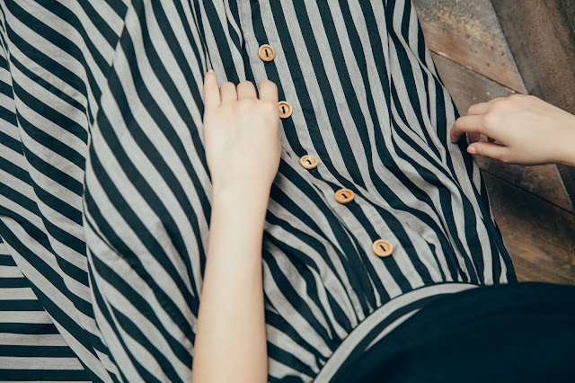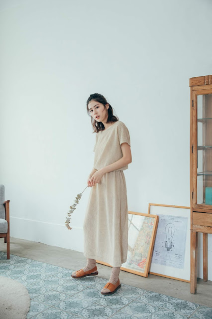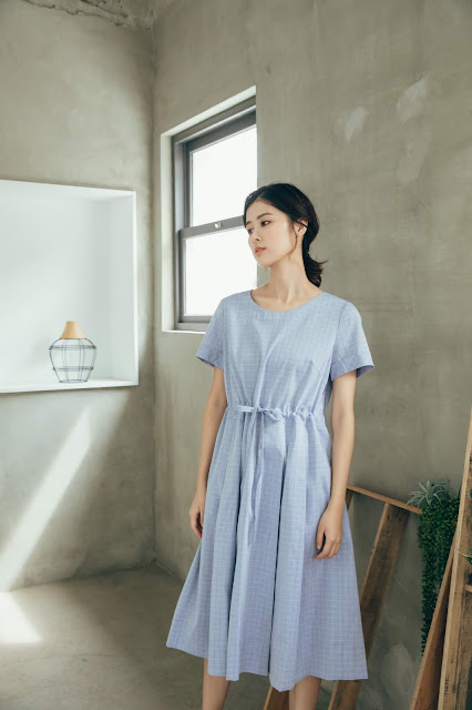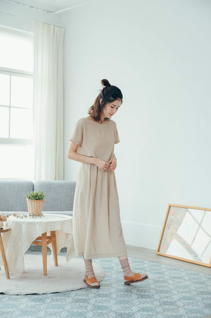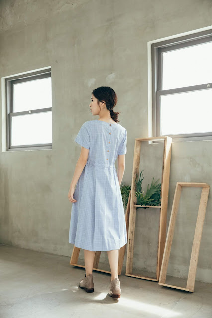 連袖洋裝在腰部加上一整圈鬆緊帶