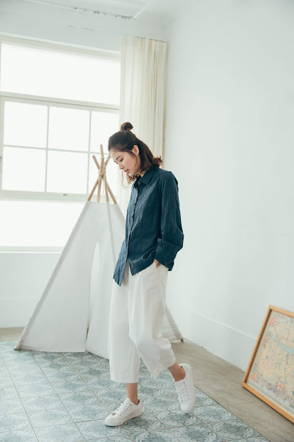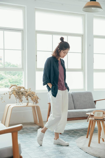 搭配日常風景壓線白褲清爽簡潔