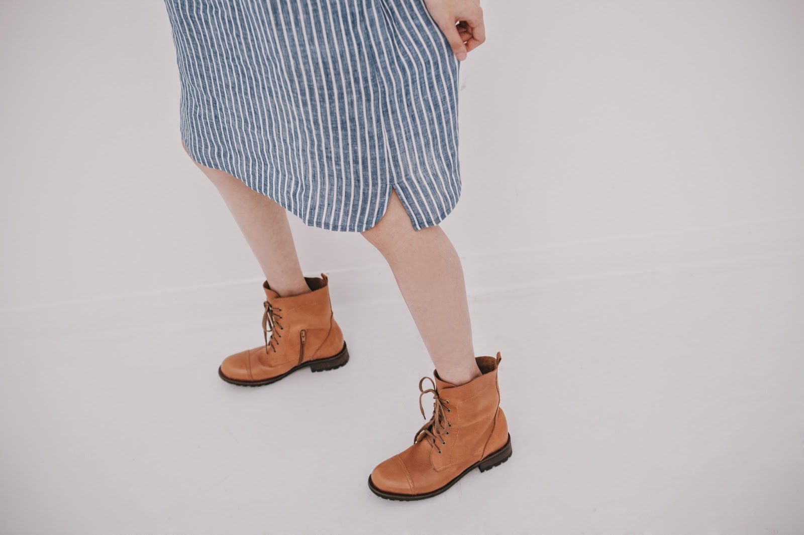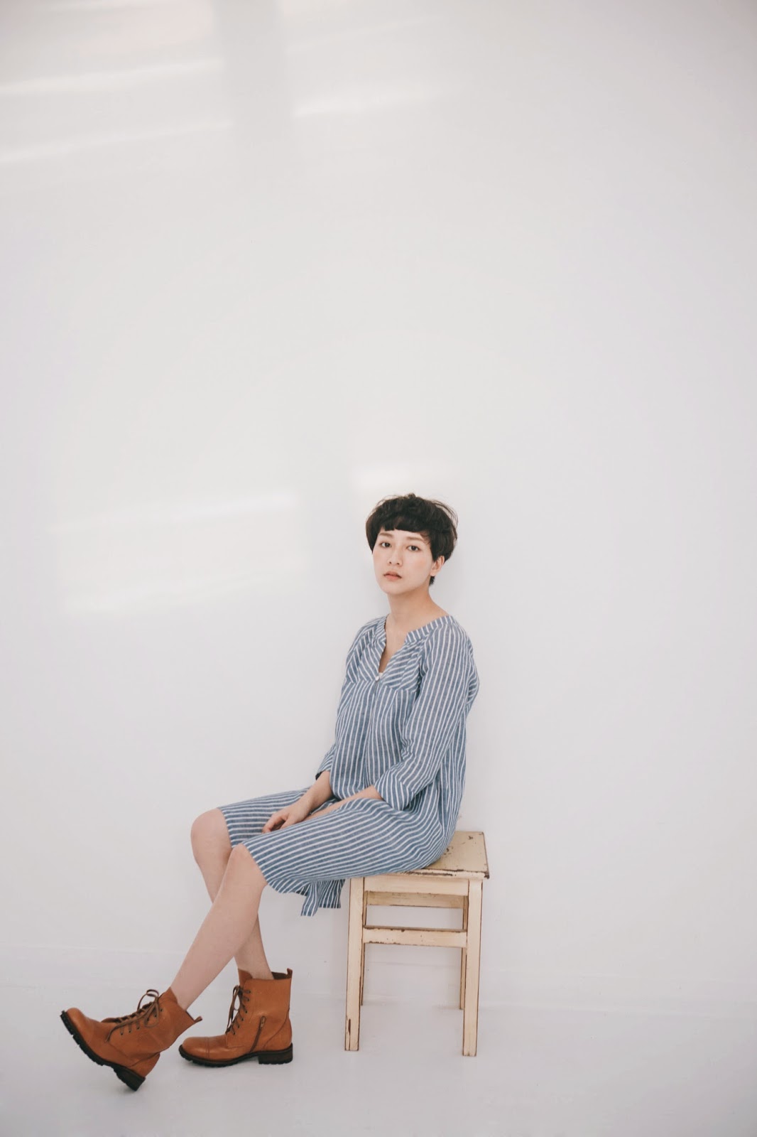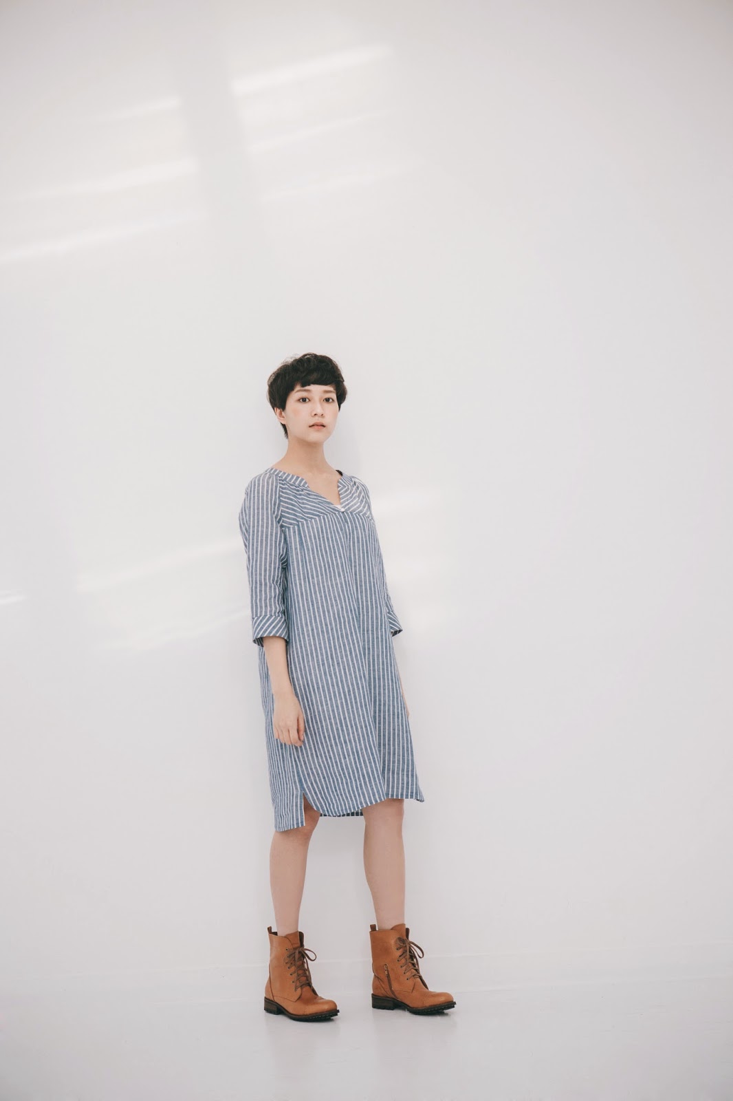清爽藍白條紋開襟洋裝