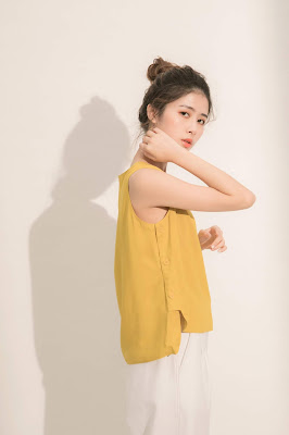 夏夜晚風無袖側釦上衣-微酸檸檬 $1480