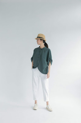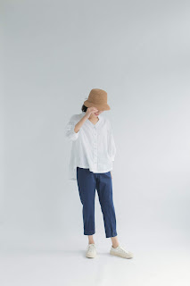 搭配台中大甲師傅手編的淺色拉菲草帽 (預計於4月上架)