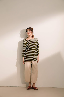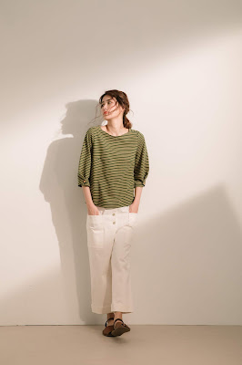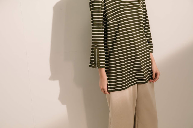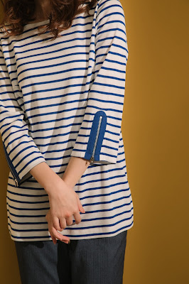 慢慢條紋七分袖拉鍊長上衣-島 $1880