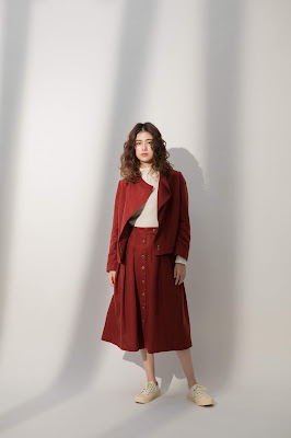 勇敢女爵壓褶排釦中長裙-撫紅 $2980