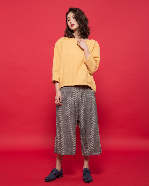 日常溫度七分袖毛料上衣 – 黃太陽