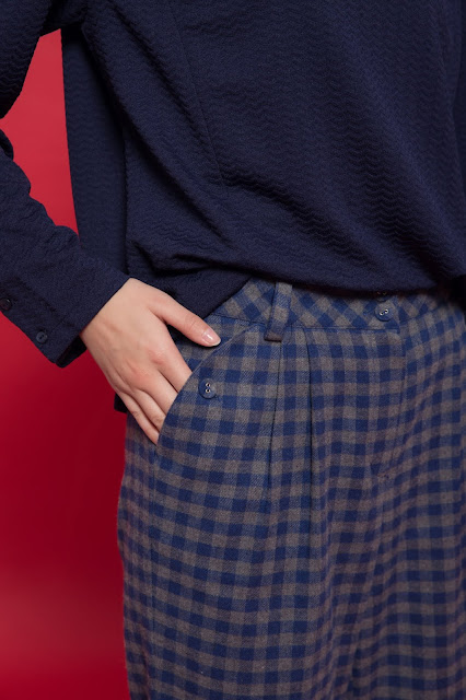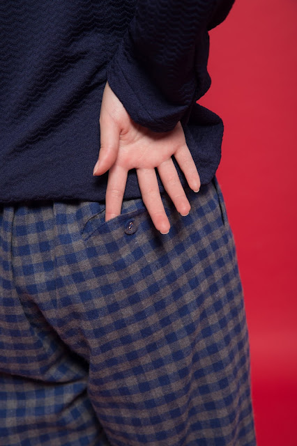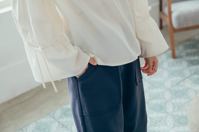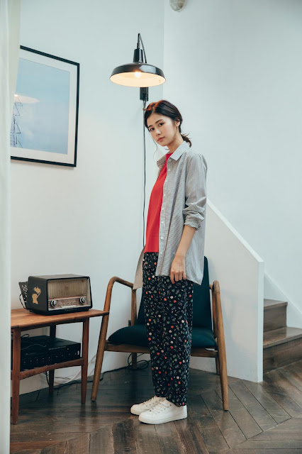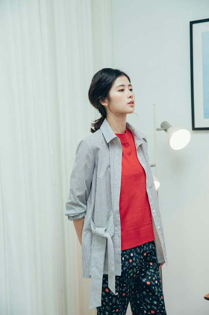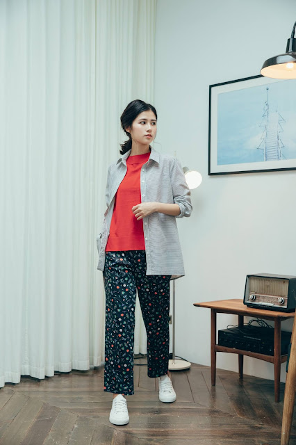 挺度的褲料搭配短袖的襯衫上衣也可以喔