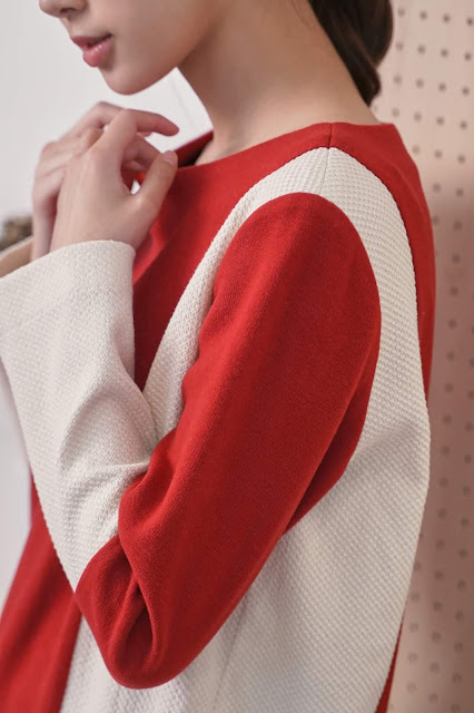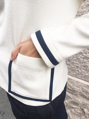 袖口延續相同的設計以拼接的方式做了跳色裝飾