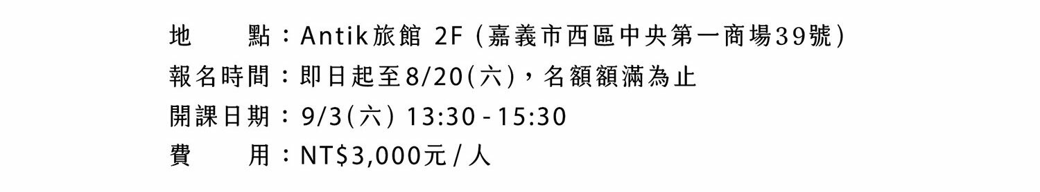 活動地點|Antik旅宿 ( 嘉義市西區中央第一商場39號 )