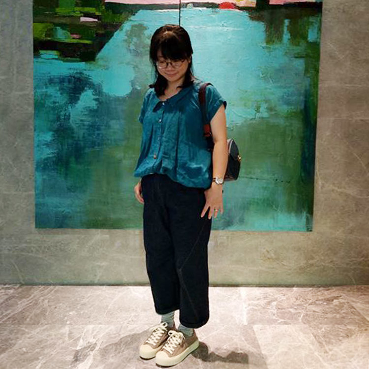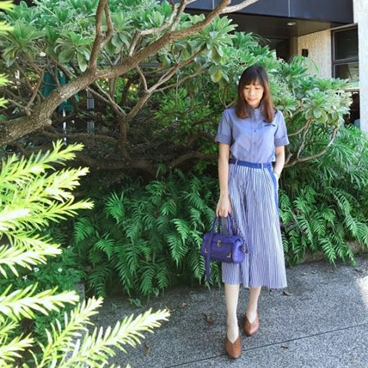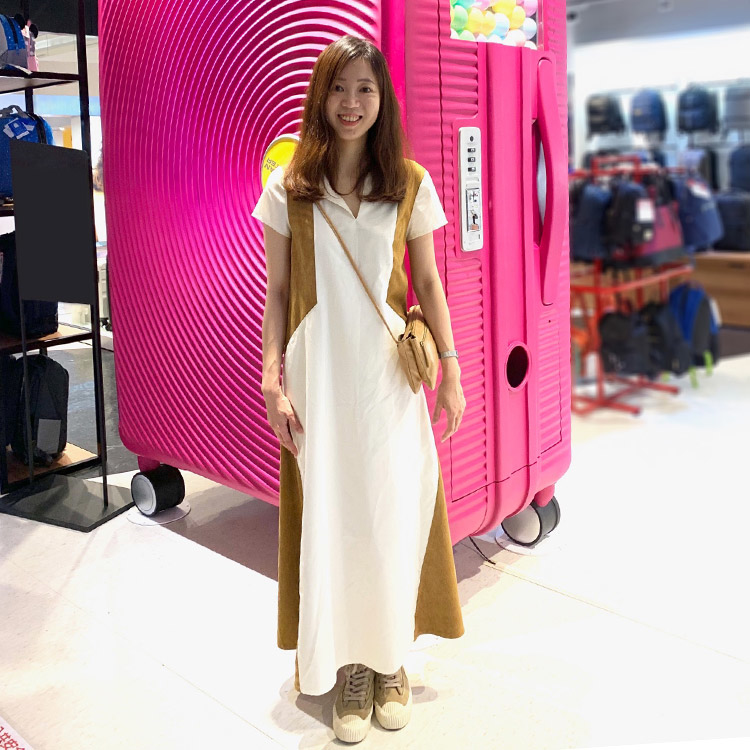 這件的材質完全正中我心,還有它的拼接巧思,讓素面洋裝一點都不單調,胸前的車縫也是我喜歡的,我為它想了好多種搭配,無論是中間繫個細的腰帶,或是裡面搭個有白色雕花領口的襯衫露出白色袖口我都很喜歡,其中還有一種是下半身再穿白色長裙,是有沒有這麼誇張,我要表達的是...若這件可以拆開做上衣/裙子,我還會再次購買的(笑)。」