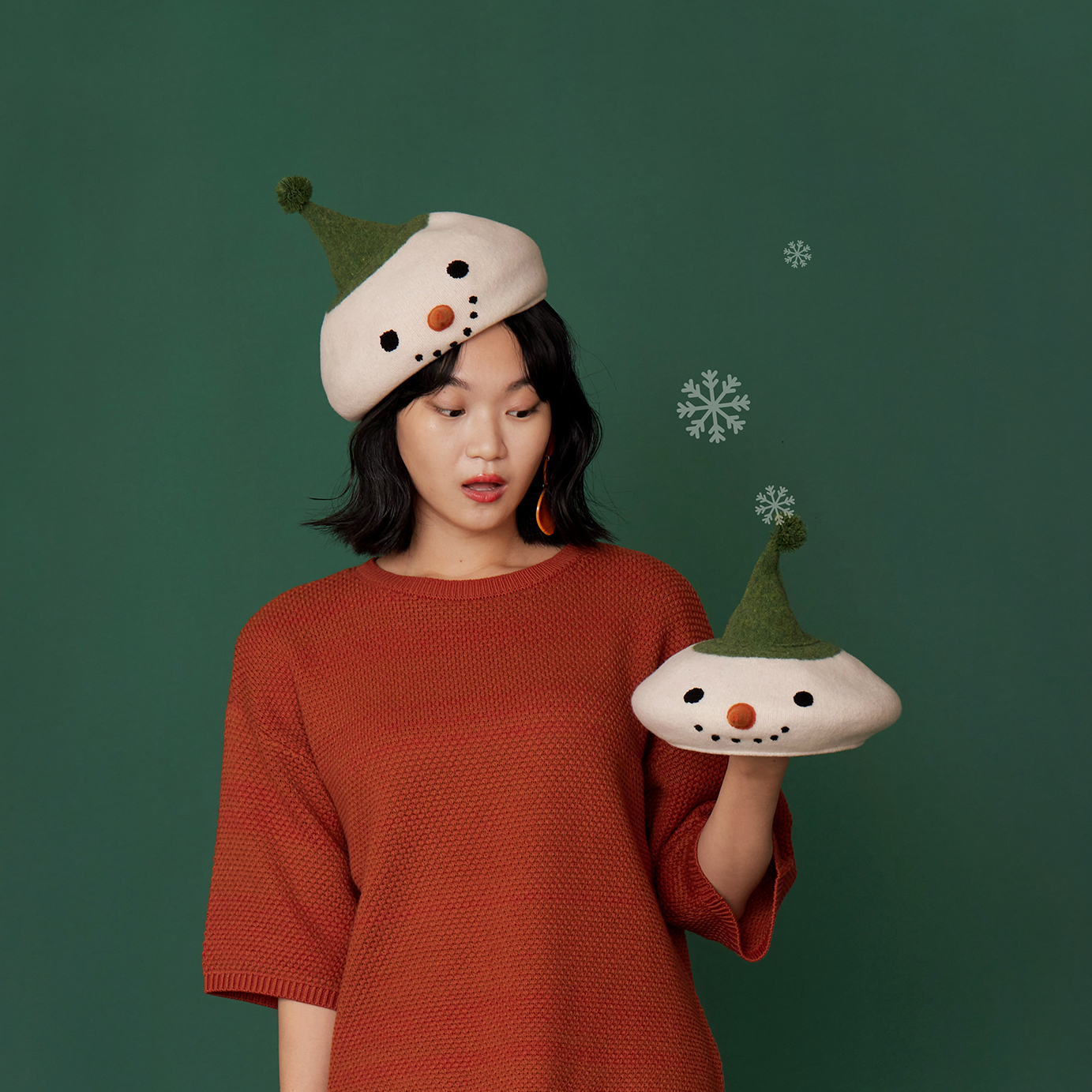 嘿咻嘿咻 為雪人帽戴上帽子(笑)