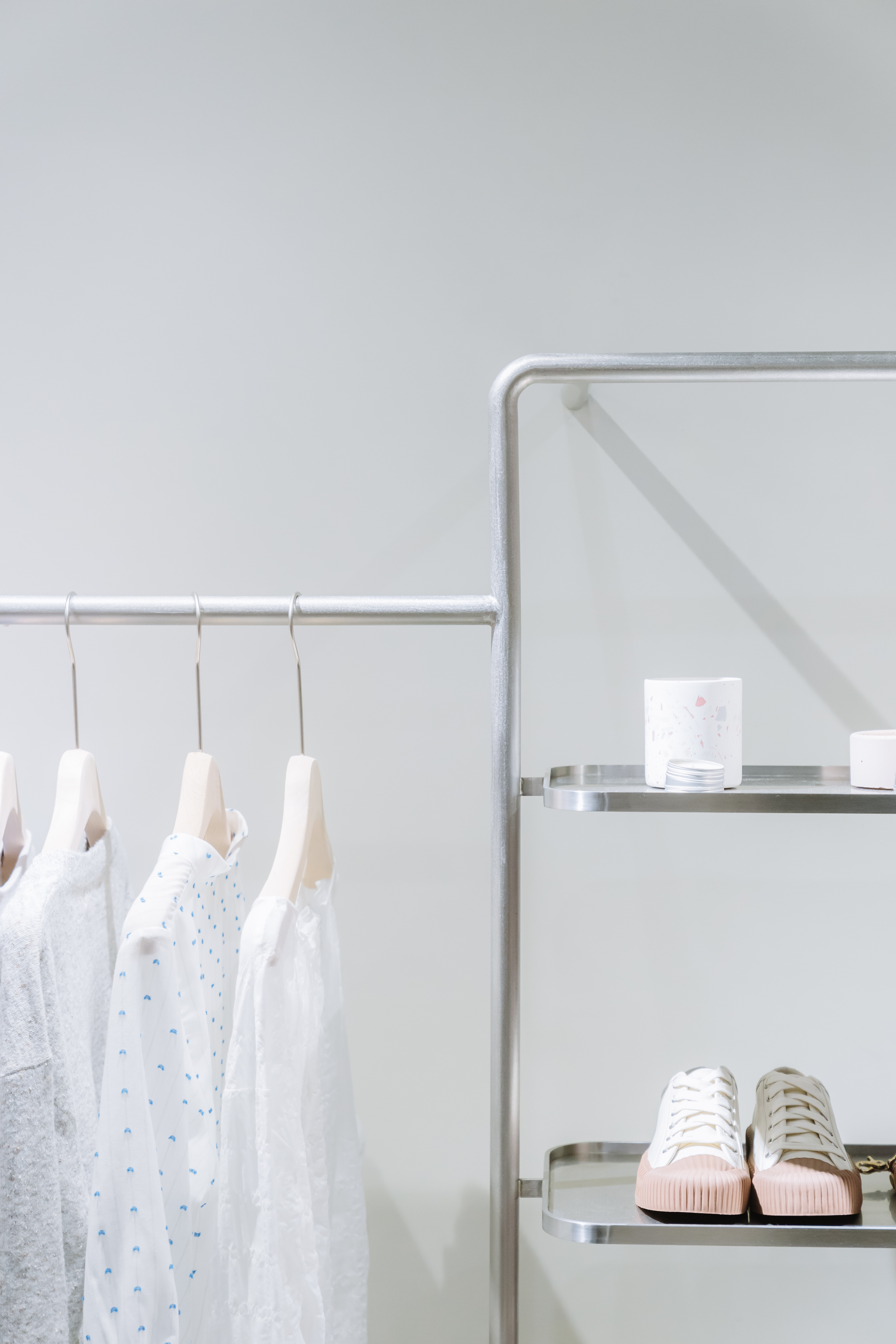 許許兒散步店座落於鹽埕區知名的奶茶一條街,街巷裡悠閒的步伐引領著來往的人們望向一間低調溫馨的服飾店。落地的木質門面搭配兩側的燈飾如同港灣的夜燈,溫郁而親切。散步店在鹽埕區約有六年之久,爾後因應品牌的成長與風格上些微的調整,於去年重新改裝,期許小店的裝潢設計可以更符合周邊巷道環境的元素。