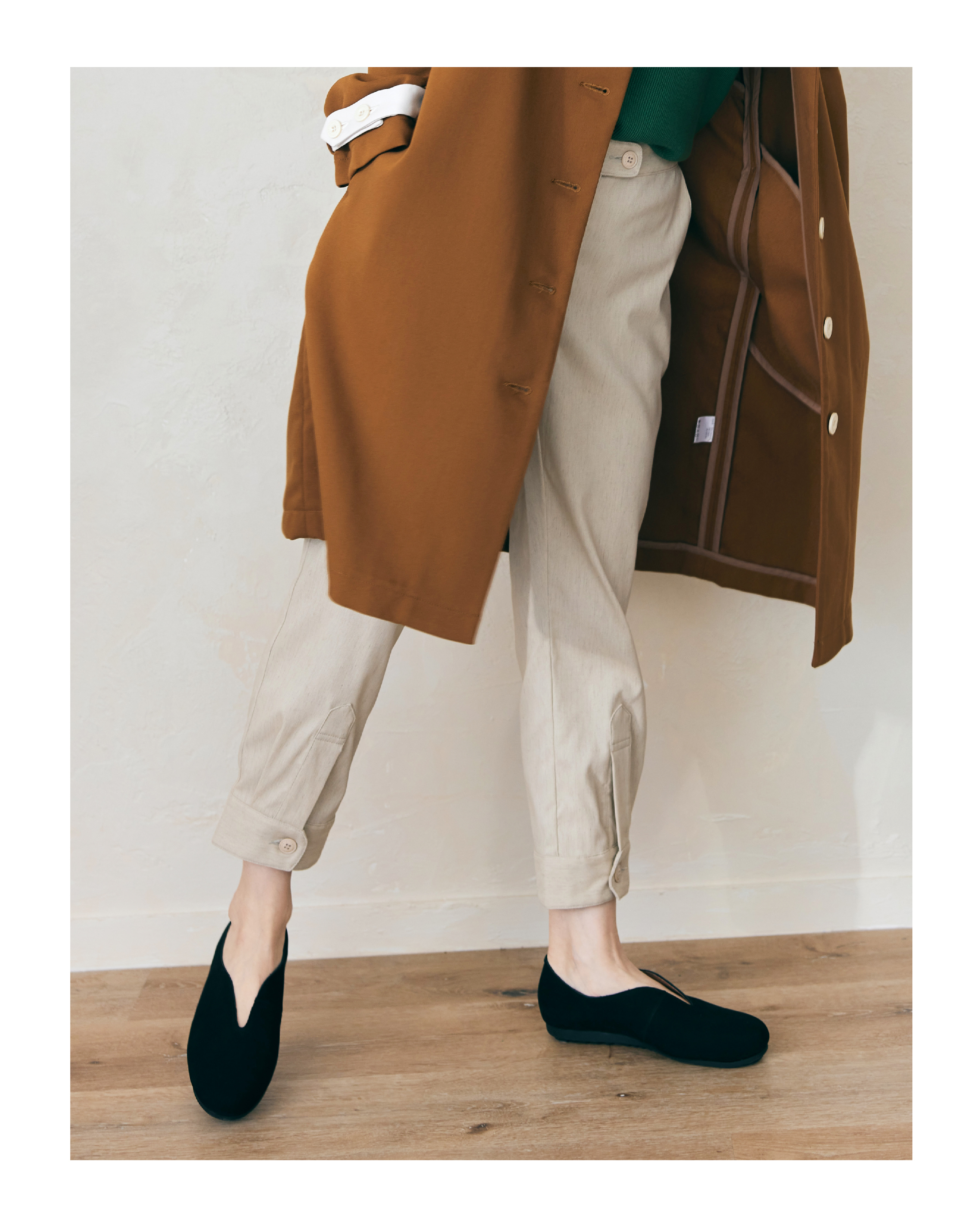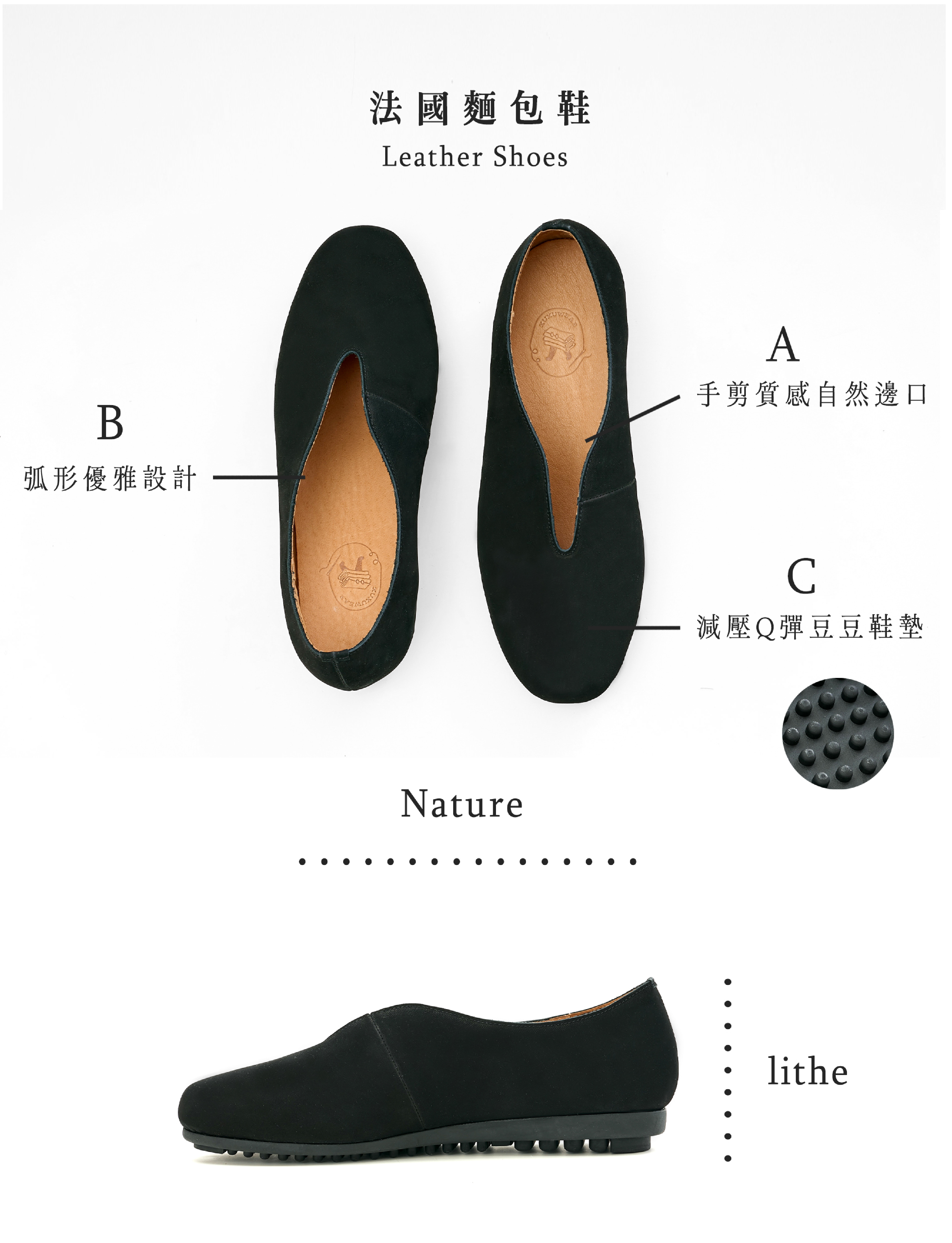 有著可愛的名稱,柔軟的穿著體驗與圓圓的外型得名,今年的麵包鞋是墨魚與藍帶!使用頂級粒面牛皮,利用打磨與拋光等多道工序處理,使短蛋白籤維略微起毛,形成美麗的天鵝絨面,充滿秋冬的高級氛圍感,同時非常襯托皮膚的白皙。分擔壓力的大底橡膠豆豆,每步前進,都以最可愛的彈力感作為應援。