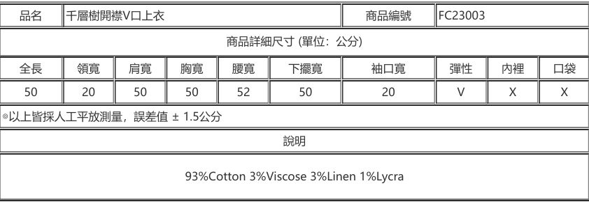 可愛的組織布料,像白千層樹,一層一層,撕下千層樹皮寫情書,戀人告白的成功率提高50%,把這樣的心情放在衣服設計裡,希望你愛的也愛你,被所有喜歡的事物包圍,V口開襟款式,單穿俐落。開襟也能帥氣搭配,挺挺的布料很能修飾上身的線條。