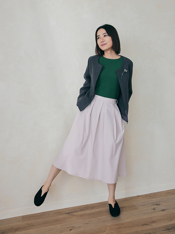 美麗折裙,左右對稱的折寬折型,就像天空與鏡面的反射,左右展開出完美擺度,大方簡雅,稱為情不自禁轉圈圈的裙,腰耳壓線設計,愛不釋手整體細緻感。