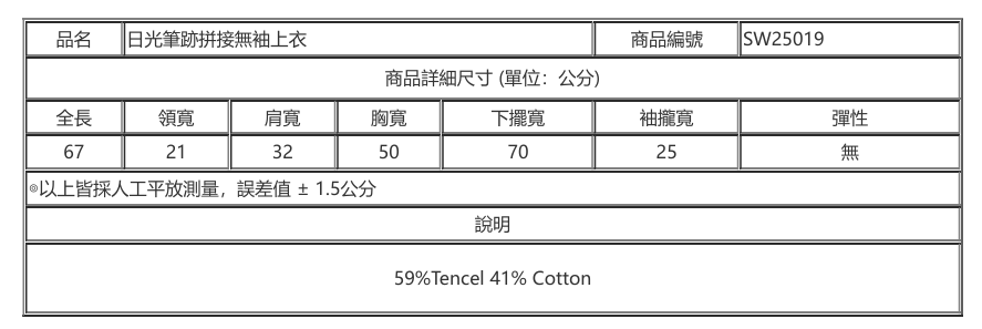 模特兒身型參考
